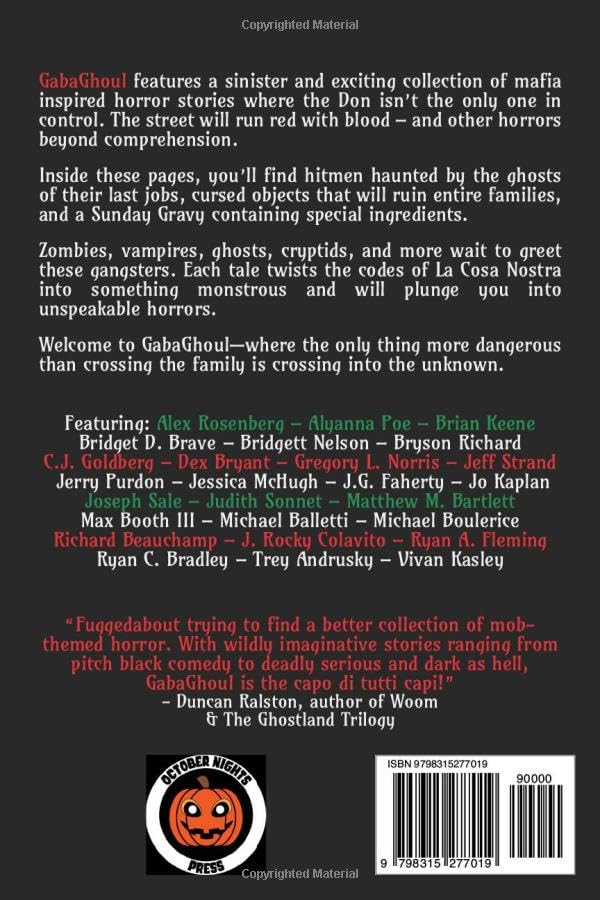 In the world of wise guys and made men, loyalty is everything—even in death. GabaGhoul features a sinister and exciting collection of mafia horror stories where the Don isn’t the only one in control. The street will run red with blood – and other horrors beyond comprehension.
